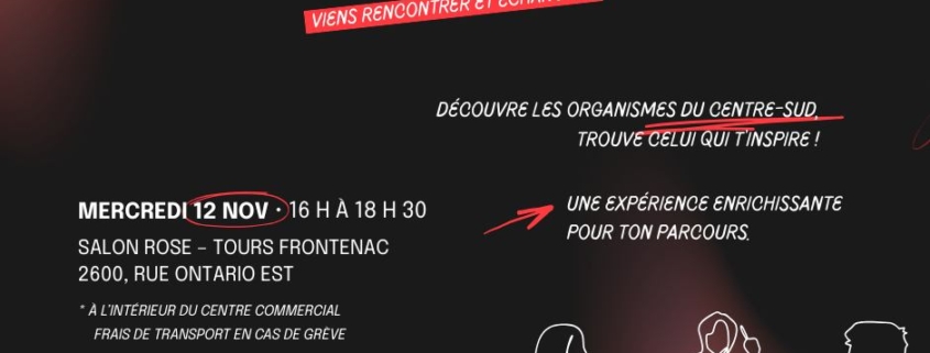 Le CRIC et la CDC Centre-Sud organisent une activité de réseautage pour faire découvrir les organismes du quartier et encourager les échanges entre nouveaux arrivants, immigrants et citoyens du Centre-Sud. Inscription : bohdan@criccentresud.org