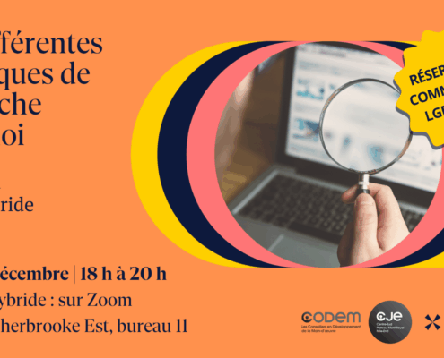 CODEM/CJE, en collaboration avec la CITIM, vous convie à un moment hors du temps. Trois personnes partageront leurs histoires…